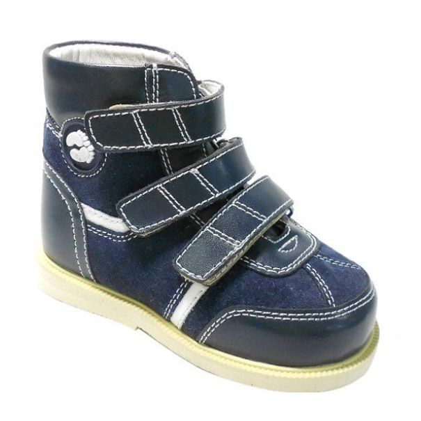 Ботинки антиварусные Сурсил-Орто для мальчиков AV12-002 синие СУРСИЛ-ОРТО Описание Эффект антиварусной обуви основывается на теории трехточечной коррекции. Первая точка опоры – это пятка. Задний отдел стопы благодаря жестким берцам обуви удерживается вертикально в физиологически правильном положении, что предотвращает торсию в голеностопном и коленном суставах при ходьбе; Вторая точка опоры это с наружной стороны проекция кубовидной кости и заканчивается на уровне сустава Лисфранка; Третья точка опоры это с внутренней стороны стопы проекция первого плюснефалангового сустава стопы. Эти три точки опоры предотвращают установку стопы в патологическое варусное положение. Во время ходьбы достигается аддукция переднего отдела стопы. Эффективная коррекция достигается латеральным отведением переднего отдела стопы на 8 градусов. Показания Антиварусная обувь Sursil Orto назначается для коррекции косолапости. Обувь применяется при врожденной эквино-варусной деформации с приведением переднего отдела стопы. После хирургического лечения косолапости. Особенности Все модели антиварусной обуви СУРСИЛ-ОРТО изготовлены из высококачественных натуральных материалов:-   Верх - натуральная кожа;-   Подкладка - натуральная кожа;-   Подошва - микропористая резина или термокаучук. Все демисезонные модели снабжены съемными анатомическими стельками. Обувь данной марки очень легкая, внешне не отличается от обычной обуви. Обувь имеет разворот носочной части наружу на 8 °С, для коррекции и профилактики косолапости. Жесткий, высокий берец  позволяет фиксировать стопу  и голенностопный сустав в физиологически правильном положении, предупреждая развитие деформаций. Плотная фиксация стопы регулируется застежкой велькро. Сандалии под индивидуальную либо профилактическую стельку, которая устойчиво поддерживает анатомическую форму сводов стопы, уменьшает ударную нагрузку при ходьбе. Ригидная подошва с заложенным перекатом стопы в носочной части, помогает при ходьбе правильно ставить стопу. Таблица соответствия размеров Определите Ваш размер по следующей последовательности: Поставьте ногу на чистый лист бумаги. Отметьте крайние границы ступни, положение ручки 90 градусов (у 1-го или 2-го пальца и пятки). Измерьте это расстояние в см. Проделайте тоже самое с другой ногой. Сравните 2 результата, ориентируйтесь на больший. Найдите соответствующий размер в таблице размеров, расположенной выше. Сертификация: Обувь имеет сертификат соответствия, выданный Федеральной службой по надзору в сфере здравоохранения и социального развития. AV12-002eng /upload/iblock/d64/d64a7672ade7db503cb6ea54f582df9f.jpg