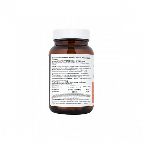 Содержание активных веществ в 1 капсуле: Витамин Д3 - 2000 МЕ; Витамин К2 - 50 мкг.
